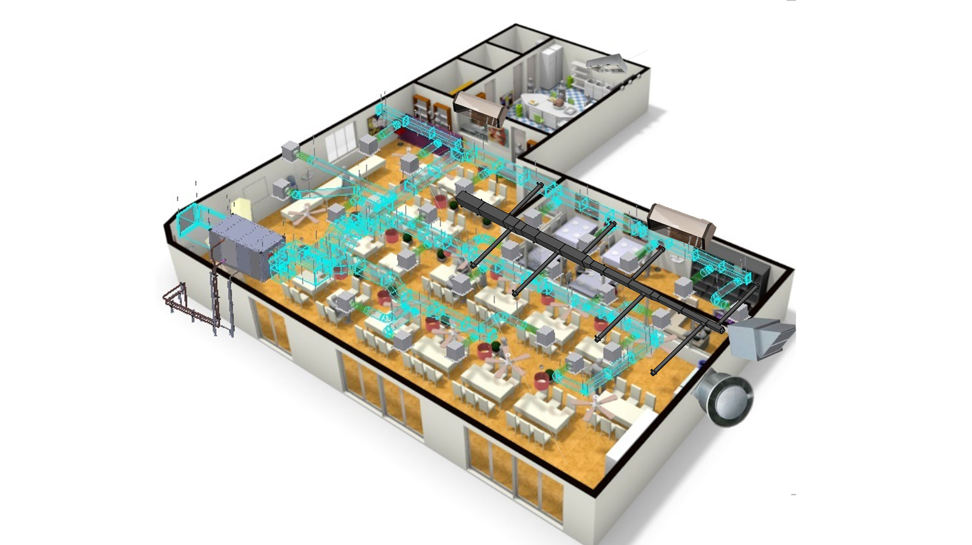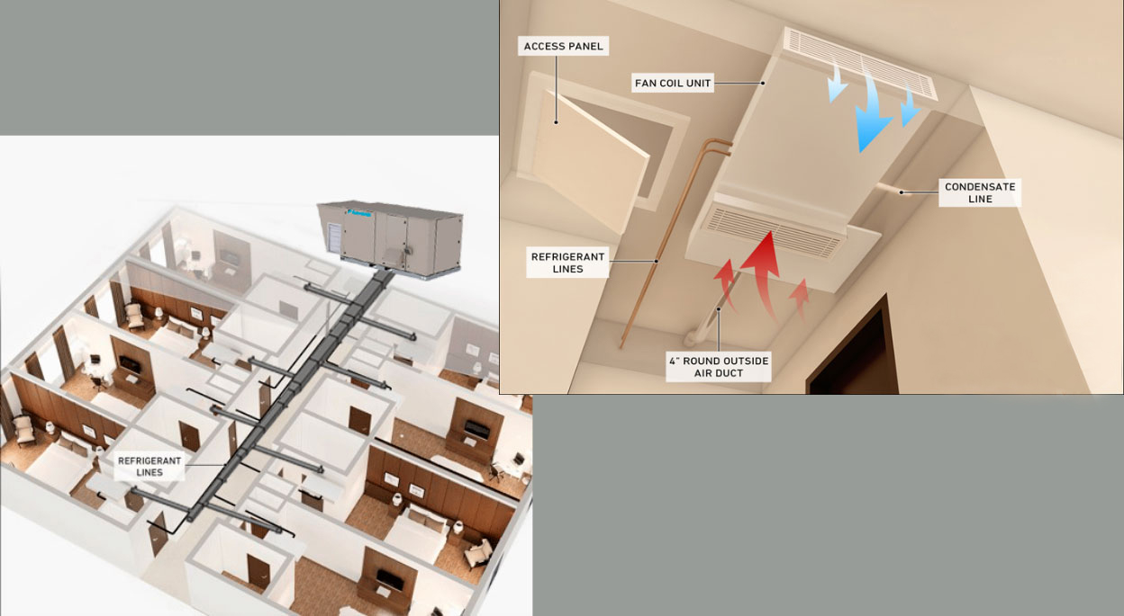 En espacios donde se dificulte la ubicación en techos, y el recorrido hasta el cielo sea muy amplio, es mejor ubicar el equipo de ventilación en pared.