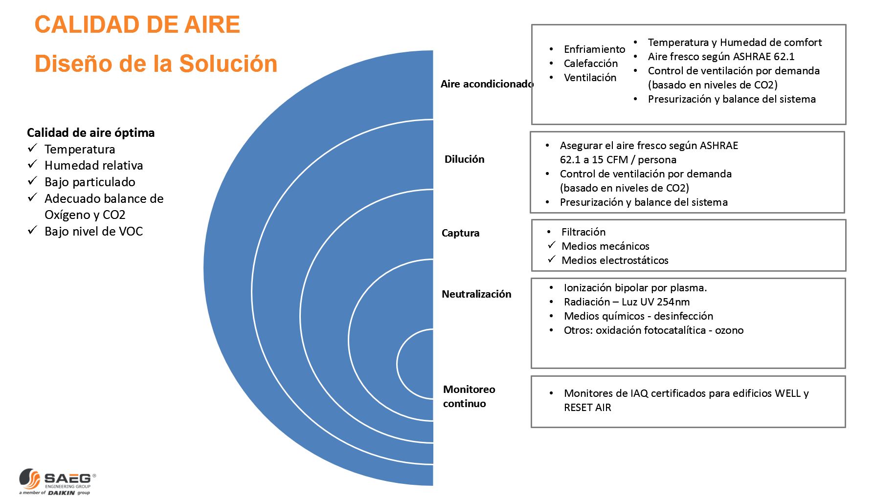 Un sistema de aire acondicionado bien diseñado e instalado debe mantener una temperatura de comfort (19-25 C) y una humedad relativa entre 40% y 60%, para no estimular la reproducción de virus y bacterias